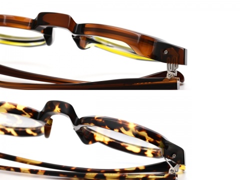 ただし、FACTORY900らしい多角面とエッジの効いたフォルム、凹凸のあるフロントは、一般的なインポートフレームにはない立体感を感じさせ、見る角度によって変化する厚みに強弱をつけたフロントは、クラシカルなフレームでありながら、どこかアクティブな躍動感を演出させます。