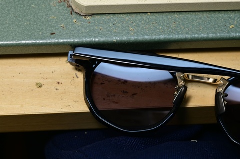 「RF-015」にカラーレンズを組み合わせても同じようなスタイルのサングラスになるかと思いますが、やはりメタルパーツが組み込まれることで、よりクールで知的な印象を作り出せます。