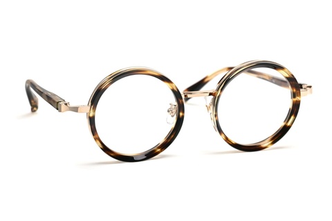 シンプルなデザインだからこそ表現できる幅は少なくなりますが、テレビジョンカットを施したアセテートをメタルパーツに組み合わせ、その造形を効果的に表現しています。「ちまたでよく見る”丸メガネ”に見えるけど、どこかちょっと変わっている」、見た目の程良いアクセントとそのサイズ感が大きなポイントです。