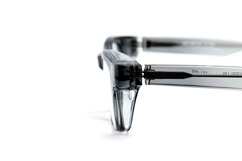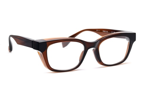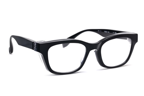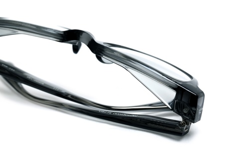 レンズの厚みが目立ちにくくなることはもちろん、肉厚なアセテートをくり抜き、フレーム本体の軽量化を図ったことで、重さによる不快感も軽減されます。