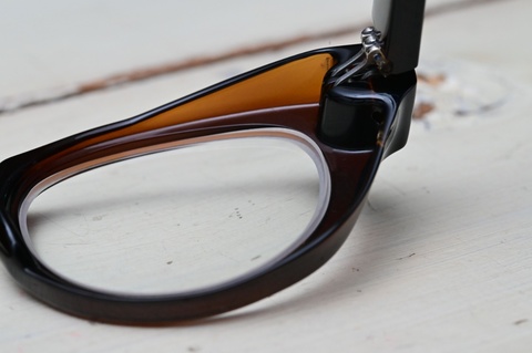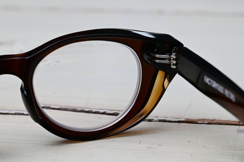 そこで、ワタクシが今回チョイスしたフレームカラーは「col.169」ビール茶。本来は「col.001」を選ぶところですが、黒はもともと収縮効果もあり、強度近視のレンズが入ることで、よりお顔に対して収縮されることを避けるため、黒に比べ若干見た目の柔らかいビール茶をチョイスしました。