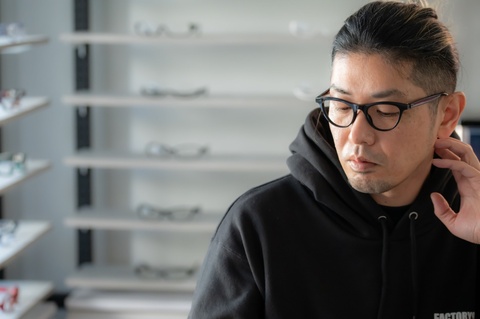 ご覧のように「RF-300」はフォックス型、国内では敬遠される皆さんも多い独特な玉型ですが、そのキレイなカタチをどうにか掛けこなしたいと目論んでいます(笑)うまく掛けこなせれば目元もキリッと引き締まり、どこか色気を感じさせるフォックス型に、実際のところ憧れている皆さんもいらっしゃるのではないでしょうか。