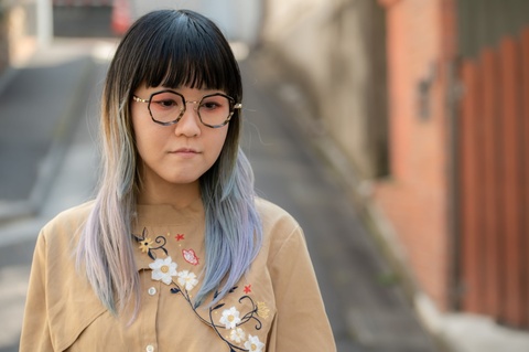 ラウンド型を上手に掛けこなすひとつの目安として、サイズ感が挙げられますが、小顔のスタッフ松本の場合でいうと、若干オーバーサイズ気味な「RF-051」ですが、今の時代感を反映させるような、ほど良いサイズ感だと思います。逆にいえば男性の皆さんには、比較的ジャストサイズで掛けていただけるサイズ感のラウンド型ということで、特に今回仕様変更した「col.129」をおススメしたいところです。