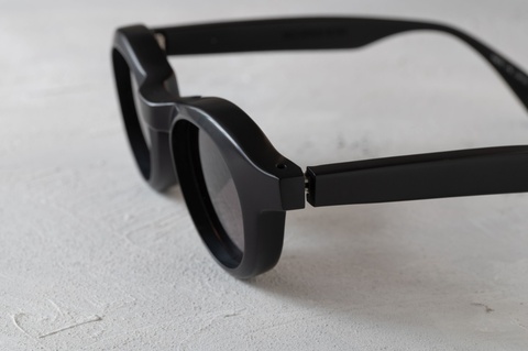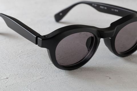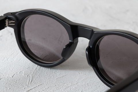 シンプルだからこそダイレクトに現れる表面の仕上がり、特に「RF-007」や「RF-008」は、青山眼鏡が誇る熟練の職人による仕上げ磨きの精度の高さが遺憾なく発揮されています。その美しいフォルムがマットブラックによってより際立っていることもはや言うまでもありません。
