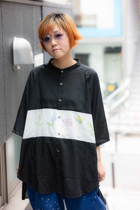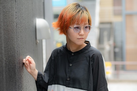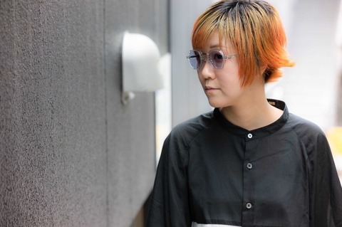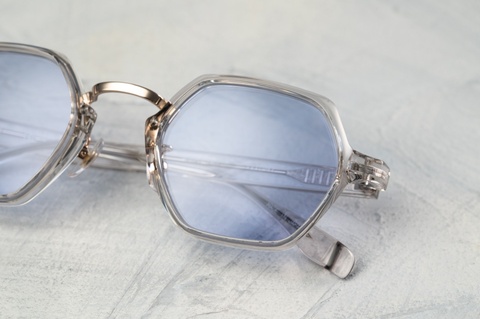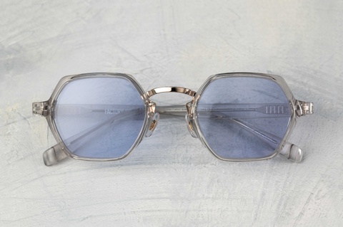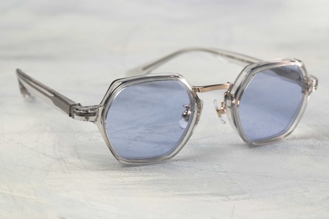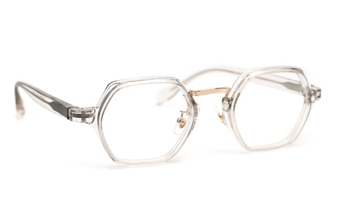 「RF-057」は、なんといっても六角形の玉型が特徴となりますが、その特徴的な玉型にクセを感じ、普段使いの難しさを感じてしまった皆さんもいらっしゃるかと思います。しかし「RF-057」最大の特徴は、その玉型が見た目以上に顔馴染みが良いという点ではないでしょうか。特に今回ピックアップした「col.049」は、ガラスのような透明感のあるクリアよりも肌馴染みがよく、「RF-057」の特徴を活かしながらご自身のスタイルにも落とし込みやすいカラーです。