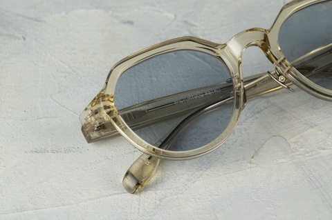 こちらも過去のブログでご紹介した、特殊カラーレンズ”キャリアカラー”を組み合わせたサングラス。同じ「col.880」キハクですが、両モデルの対照的な造形によって、それぞれ受ける印象はまたベツモノですね。