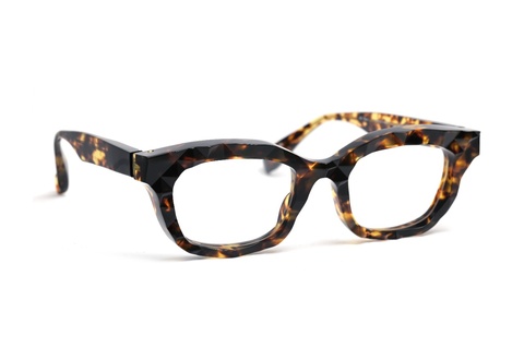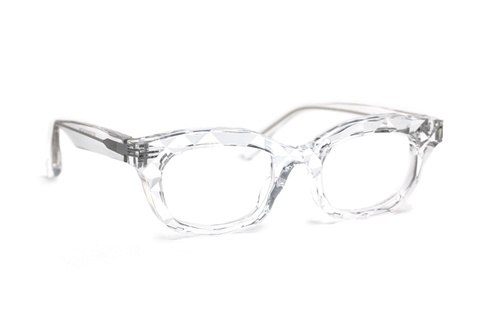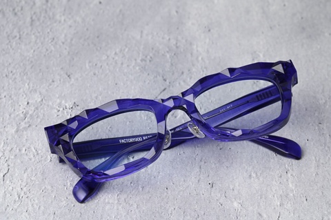 ご存じ「RF-064」は、表面に施されたダイヤモンドカットが大きな特徴であり、光の当たり方や見る角度によってフロント表面の表情が変化し、アセテートの美しさが際立ちます。本来、ダイヤモンドカット面が1番際立つのは「col.001」(黒)になりますが、透け感のあるcol.417(バイオレット)も、不規則な光の反射によって妖艶な輝きを放ちます。