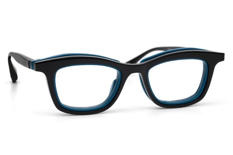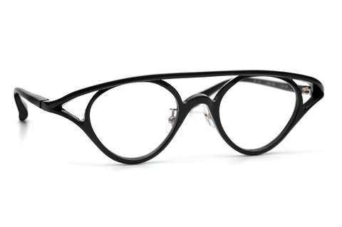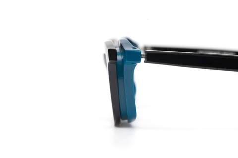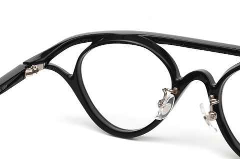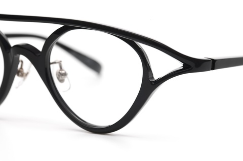 ご覧のように、2つのパーツの間に隙間を作ることで、1枚のアセテートだけでは表現できない奥行きと立体感を生み出し、一般的なクラシックフレームにはない、新たな色遣いが可能となりました。小文字シリーズで確立したアセテートの表面に切削を施すレイヤード構造とは異なりますが、その独自構造により、レトロシリーズの可能性を広げた唯一無二のモデルといえます。