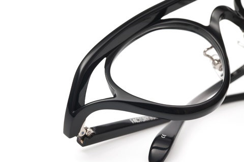 言葉にするのは簡単ですが、アセテートでこんなデザインをカタチにすることができるのは、メガネ業界広しといえども、青山眼鏡だけではないでしょうか。そう、アセテートの老舗工場として、過去の経験や独自の技術を最大限に活かした「RF-100」は、レトロシリーズのなかでもかなり異質な存在といえます。