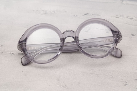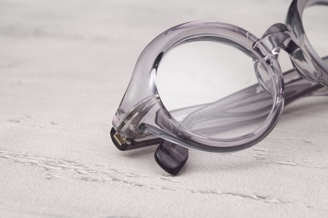 ラウンドシェイプを引き立てるチューブ状にカタチづくられた造形が、より個性を引き立てます。もともと、モード感漂う「RF-013」ですが、メガネとしてクリアグレーを掛けると、どこかフユーチャーリステックな印象を受けました。ワタクシ自身、掛けこなしは難しく、スタイリングは少々ハードルが高く感じました。もし、可能であればレンズに25%前後の淡いカラーを組み合わせことで、適度なメリハリが生まれ、ぐっと掛けやすくなるかと思います。