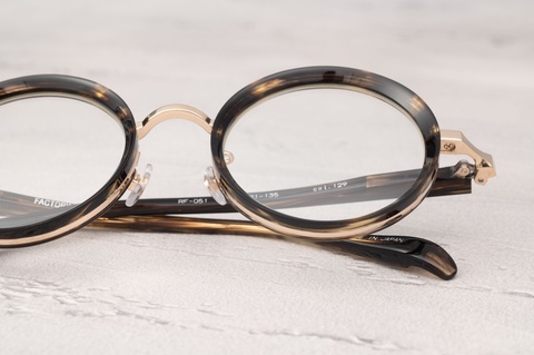 テレビジョンカットを施したアセテートのパーツを組み合わせることで、立体感を表現した「RF-051」、その「RF-051」をベースとした秋の新作「RF-058」は、内径を11角形にデザインしたラウンド×多角の組み合わせになります。発売後には両モデルを比較してみたいと思います。