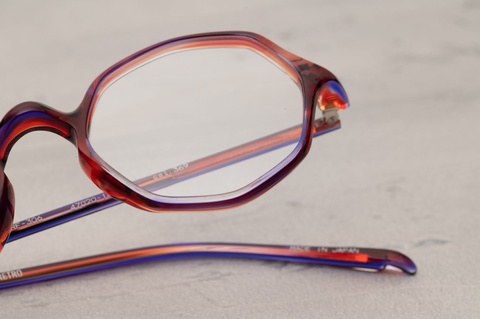 その細さから、どうしても華奢なイメージを持たれますが、智元には厚みを残し十分な強度を保たせ、見た目以上にしっかりとした作りになっています。また、そのディテールを作り出しエッジ感は損なわず、アセテート素材でありながら、まるでメタルフレームのような知的な印象は、同シリーズに共通しており、今までにはない軽やかなスタイリングを演出します。