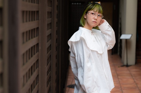 このように、メガネのデザインを活かす1つの手段として、帽子やストール、アクセサリー等々、小物を取り入れてみるのもよろしいかと思います。過去のブログでもご紹介しましたが、OSKA BASEの佐藤店長も「RF-057」col.049(グレー)に調光レンズを組み合わせ、愛用しています。こちらも是非参考にしてみてください。