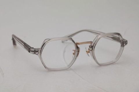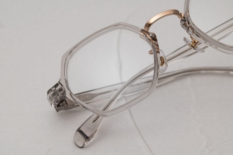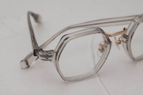その中でも特に1,2を争う人気のカラーがこちらの「col.049」カラー名はグレーになっていますが、透明感のあるクリアカラーです。本来のクリア「col.850」に比べ、ほんのりと色味が入っていることで、より特徴的な六角形が柔らかく感じ、メタルパーツのゴールドとのコンビネーションによって高級感も漂います。