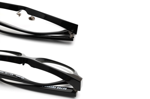 表面処理を施した「RF-065」とは対照的に、シンプルでエッジーな「RF-150」は、より使い勝手の良い、王道ともいえるウェリントン型になります。レンズシェイプ及びサイズ感は、「RF-065」をベースにしており、その見た目からは想像できない滑らかな掛け心地は「RF-150」も同様です。