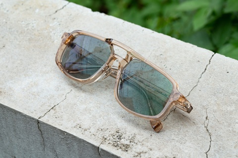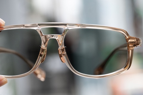 こちらは、新作発表会でご予約をいただいたお客様の「col.896」ですが、今回レンズは、可視光線調光”SENSITY DARK” ダークグリーンをお選びいただきました。