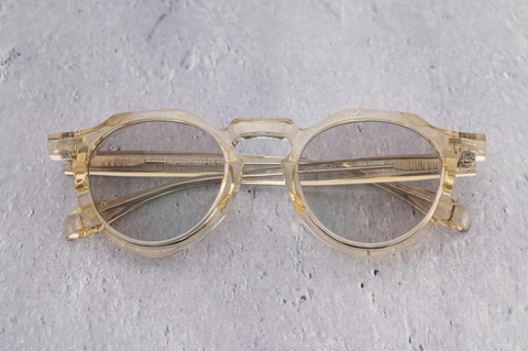 もちろん、クリアレンズのままメガネとしてご使用いただくのもありですが、トレンドとはいえハードルの高く感じるクリア系のカラーということもあり、こちらは店頭サンプルとしてご用意した、”キャリアカラー”「MSGY25」を組み合わせてみました。