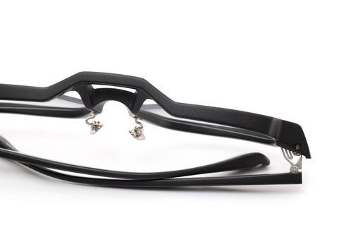 特徴的な凹凸のあるブリッジ周辺のディテールは、「RF-160」の大きな見所であり、クラシカルなイメージが一般的とさせるツーブリッジデザインに未来感を宿します。もちろん、大文字シリーズのようなダイナミックなフォルムとはいえませんが、FACTORY900ならでは奥行きのなる立体感をマットブラックによってより堪能していただけるハズです。