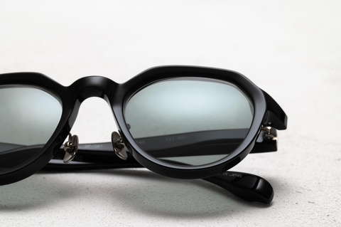 今回は、カラーバリエーション全5色のなかから、王道ともいえる「col.001」(黒)に、濃度58% グリーン系のカラーレンズを組み合わせてみました。