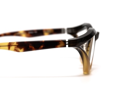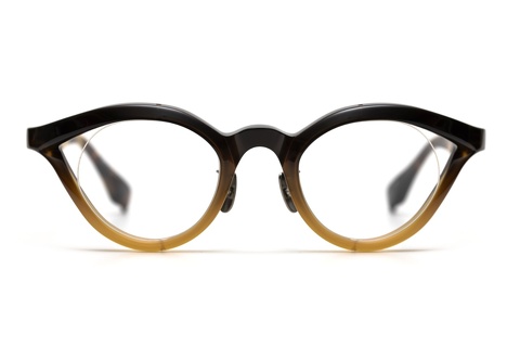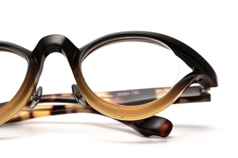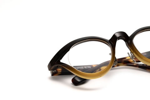 下から突き上げるようなエッジーなラインは、実際に掛けた際にフェイスラインを整え、スッキリとした印象を作り出します。特に斜め45度からの見え方は最大の見せ場となり、大文字シリーズを彷彿とさせる「RF-140」ならではの見え方です。レトロシリーズにも多数のラウンド型が存在しますが、この見え方は一般的なクラシックフレームも含め、他では味わうことのできないまさに唯一無二と呼べる新しいスタイルです。