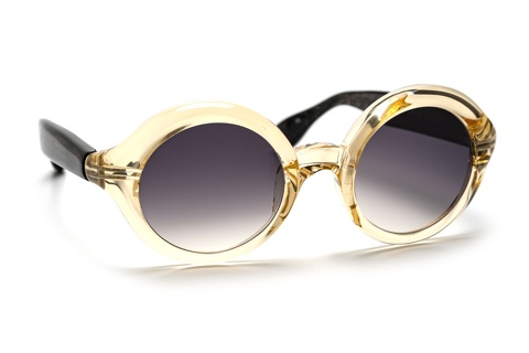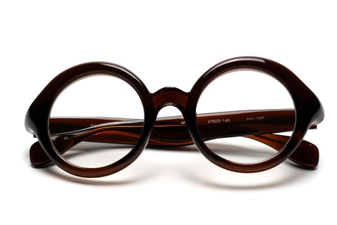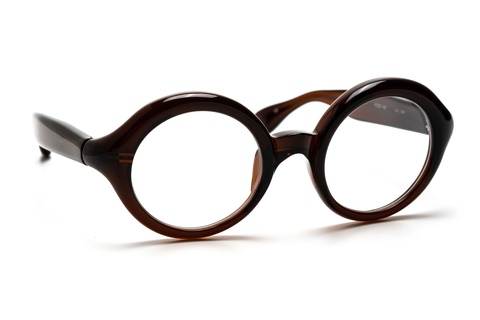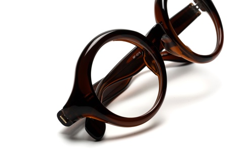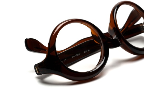 ご覧のように、丸みを帯びたチューブ状の造形がフロントリムがそのままテンプルまで繋がる特徴的なラウンド型。デザイナー青山いわく、もともとラウンド型のメガネを描こうとしたわけではなく、このチューブ状の造形を最大限に活かしたデザインが結果としてラウンド型に。まさにメガネを1つのプロダウトとして向きあってきた青山らしいアプローチから生まれたデザインといっても過言ではありません。