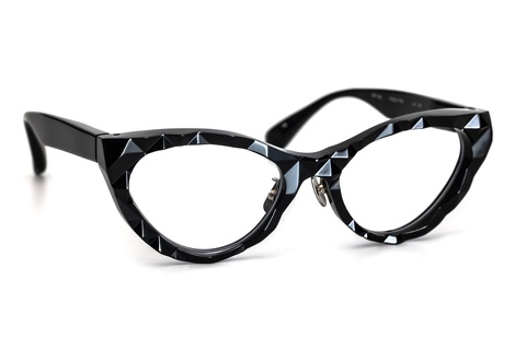 お顔を動かすたびに、キラキラと輝きを放つ様子が最も楽しめるソリッドなカラーであり、なにより使い勝手の良いウェリントン型の「RF-064」では圧倒的な人気を誇る「col.001」(黒)ですが、より特徴的なフォックス型の「RF-066」では、さらにその存在感を示します。