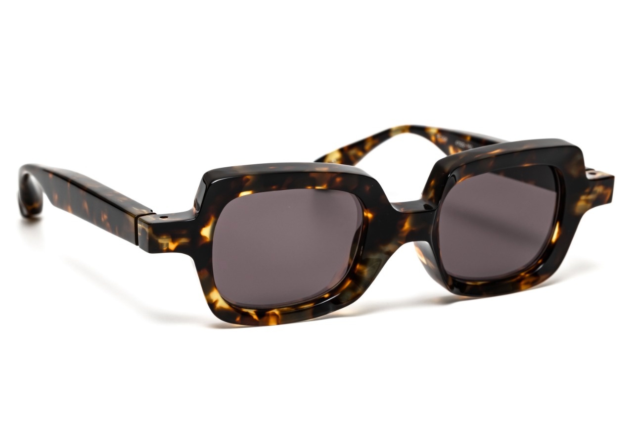 発表当時、キハクのフロントにバラフのテンプルの組み合わせが非常にご好評いただきましたが、キービジュアルでもこちらの「col.880」(キハク)を使用しています。しかし、クリアレンズのメガネよりは圧倒的にサングラスとしてのご購入が大半を占めました。