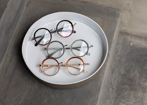 王道のブラック。黒が苦手な方でもかけやすいのは、メタルパーツとの組み合わせにより上品な印象になるからでしょうか。細みでありながらも、ラウンド型ということもあり程よい存在感が発揮され、クラシックになりすぎずモダンな雰囲気にもなりますね。