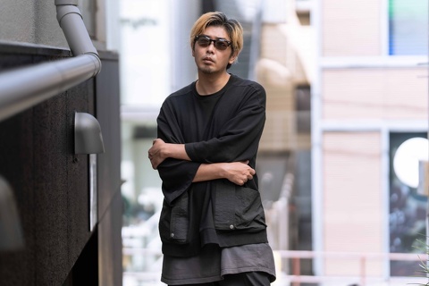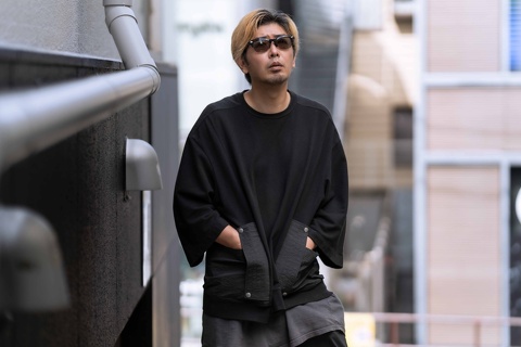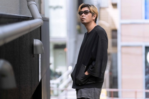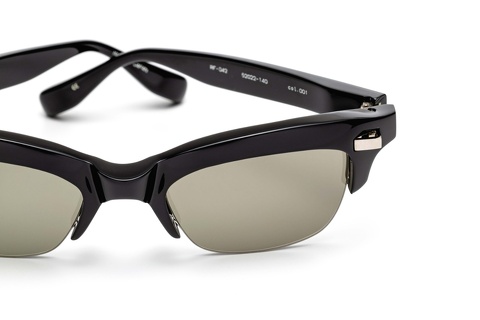 やはりカラーレンズを組み合わせることでフレームとカラーレンズが一体化し、印象の強いブローラインが極端に主張することなく、ぐっと落ち着いた印象に。特に今回は濃度の濃いレンズをチョイスしたことでより効果的にブローラインのクセを打ち消しました。今年の春先には「RF-042」を通常通りメガネとしてご紹介しておりますので、こちらも合わせてご覧いただき印象の違いを比較していただけたらと思います。