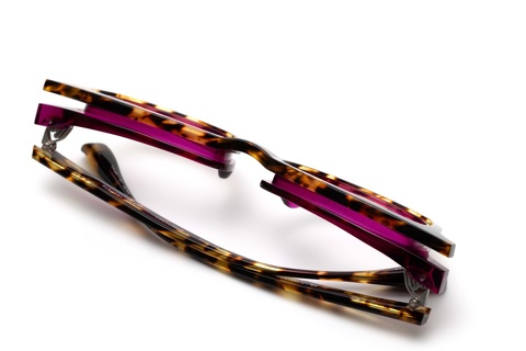 なんといっても独自の技術を活かしカタチになった構造体はまさに唯一無二。薄いフロントパーツの背面に独立したパーツを組み合わせ、2つのパーツの間に隙間を作ることで、一枚のアセテートだけでは表現できない奥行きと立体感が生まれます。