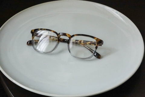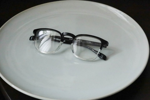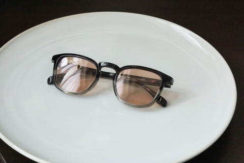 黒とクリアのツートン。最近使われていることが多い似た色で、「col.084」black two-tone(黒ツートン)がありますが、こちらは黒とクリアグレーのツートンになります。「col.075」は下部分がクリアになることから、より個性あるはっきりとしたツートンカラーです。よりレトロな雰囲気を味わうことができますね。トラッドな装いだけでなく、モノトーンスタイルなどには、モードに昇華。端正なツートンカラーですね。