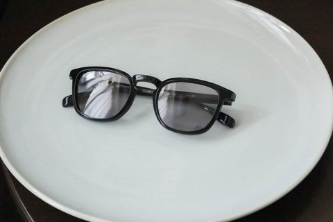 今年になって、髭を蓄えるようになった店長佐藤。髭とこのウェリントンのかっちりとしたデザインから”ダンディ佐藤”と変貌したように思うのは私だけでしょうか?めっちゃ似合うと思いませんか?基本的になんでもかけこなす佐藤、ここ最近の優しい(あざとい)イメージから、丸いタイプのフレームを好んでかけていたようですが、四角いウェリントンもいいのでは?と撮影しながら話をしていたところです。ブラックは、シンプルなカラーなので、サングラスにしてみました。レンズカラーを違う色にしてももちろん良いのですが、美しい造形美も相まってシンプルなグレーで統一感を出すとさらにかっこいいのではないかと思います。
