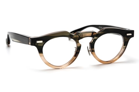 特にベースカラーのグリーンササは「RF-046」の硬質な印象を和らげ、そのクセの強さを調和します。特にテンプルは厚みをそぎ落としていることもあり、フロントに比べササ柄ならではの色合いが存分に楽しめます。