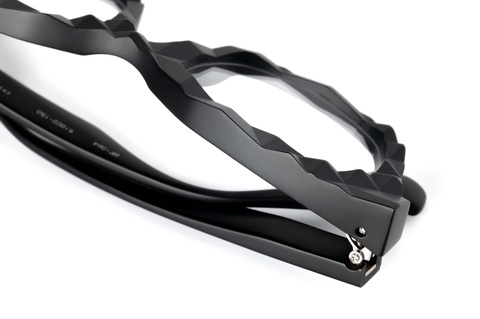 両品番を実際に掛けた印象とサイズ感をご覧いただくため、真正面から撮影しておりますが、意外にもマットブラックは顔馴染みが良いことにお気づきになったでしょうか?特にワタクシのように髪色が明るい場合、いわゆる黒縁は際立ってしまいがちですが、マット加工を施すことで柔らかい印象に。特に「RF-066」はサングラスデザインを思わせる大きめなサイズ感ですが、マットブラックは見た目の治まりが良く感じます。