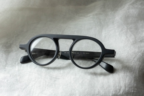 フレームのディテールに戻りますと、フラットで平面的な造形と、ブリッジ部分のエッジを効かせることにより、お顔はのっぺりすることなくかけていただけます。近年トレンドにもなりつつあるハイブリッジフレームではありますが、それとはまた一味違うデザインとなっています。かわいさとかっこよさが一つのフレームの中に共存する稀有なフレームではないでしょうか?「col.001 マットブラック」は特に面造形がはっきりと出るため、デザインを楽しみながら、マットによる肌馴染みのよさも発揮します。