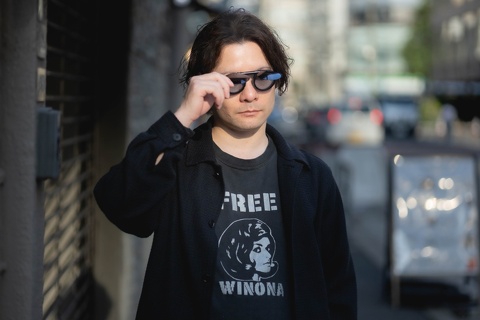 サングラスをつけた感じはいかがでしょうか?ガラッと印象が変わるのがおわかりいただけるのではないでしょうか?さらに大人なクール感を演出できます。写真のように片手で簡単に跳ね上げれることができるのがとっても便利ですね!
