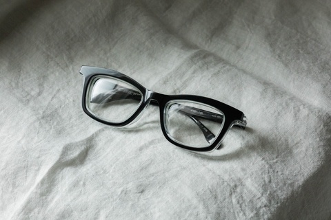 黒とクリアのシンプルイズベストなカラー。黒縁フレームが欲しいけど、人とはちょっと違うものをという方におすすめ。裏面にクリアの生地が合わさっていることでお顔に立体感が生まれ、近未来的モダンな要素が加わるかっこよさがあります。