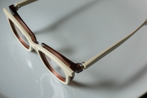 独自の技術を活かした構造体はまさにFACTORY900ならでは、青山眼鏡の技術が光ります。薄いフロントパーツの背面に独立したパーツを組み合わせ、2つのパーツの間に隙間を作ることで、奥行きをもたらし、不思議なレイヤード感が生まれます。