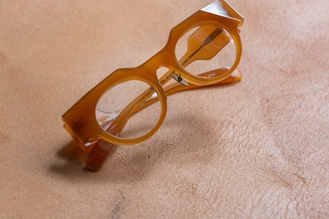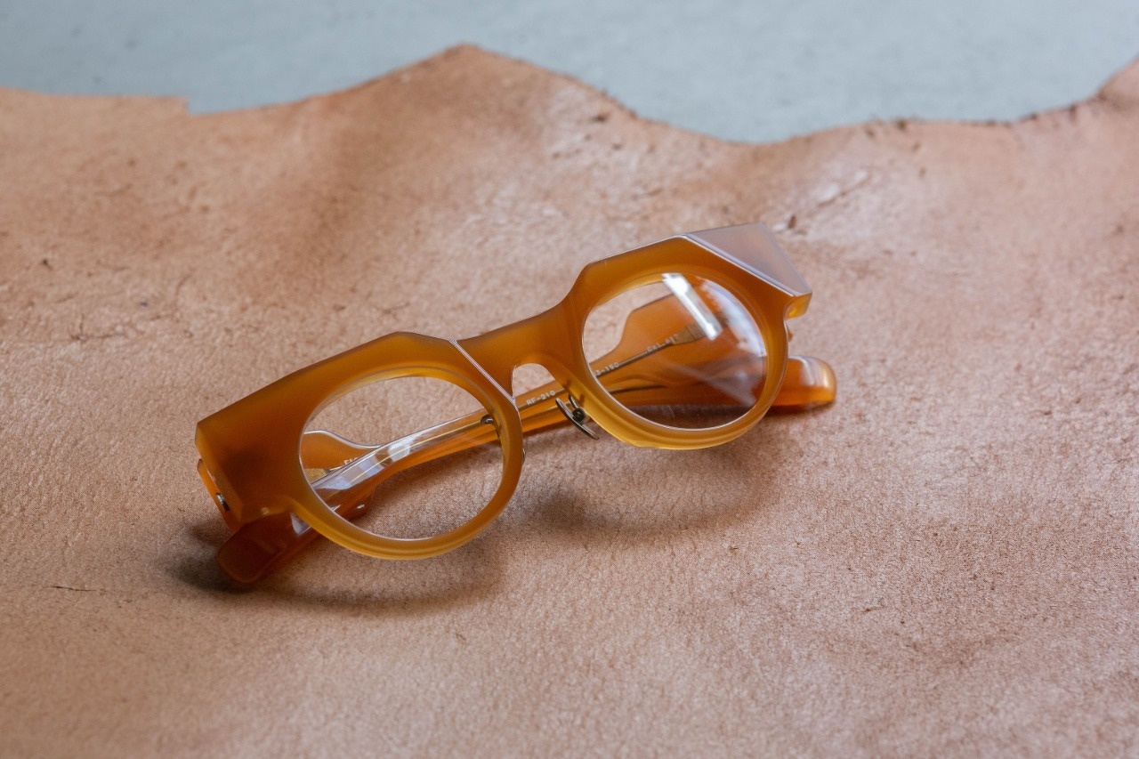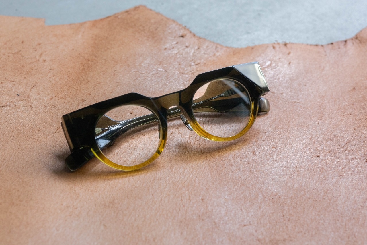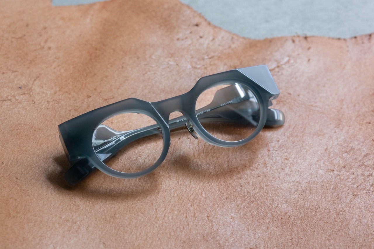 私も持っているこちらのモデル。実際にかけてみて、本当にかけやすい。重たそうな厚みをしていますが、重心バランスが考えられている、とてもかけやすい不思議なモデルです。そして、のっぺりとしそうでしない薄ら入った絶妙なカッティングは、まさにFACTORY900ならではのものです。面が大きいため、磨くのがとても難しい、職人泣かせのデザインです。