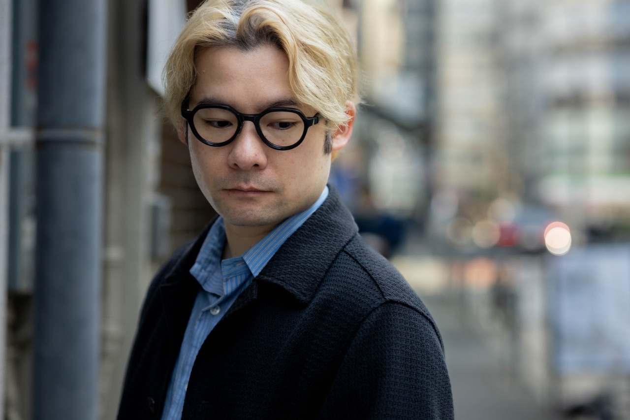王道のブラック。黒縁をかけてみたいけれど、重すぎるのは、、という方にもおすすめです。特に佐藤のように金よりのハイトーンの髪の人は黒が重たくなりがち。これぐらいのスマートさがあれば難なくかけていただけます。ビジネスにもいいですね!