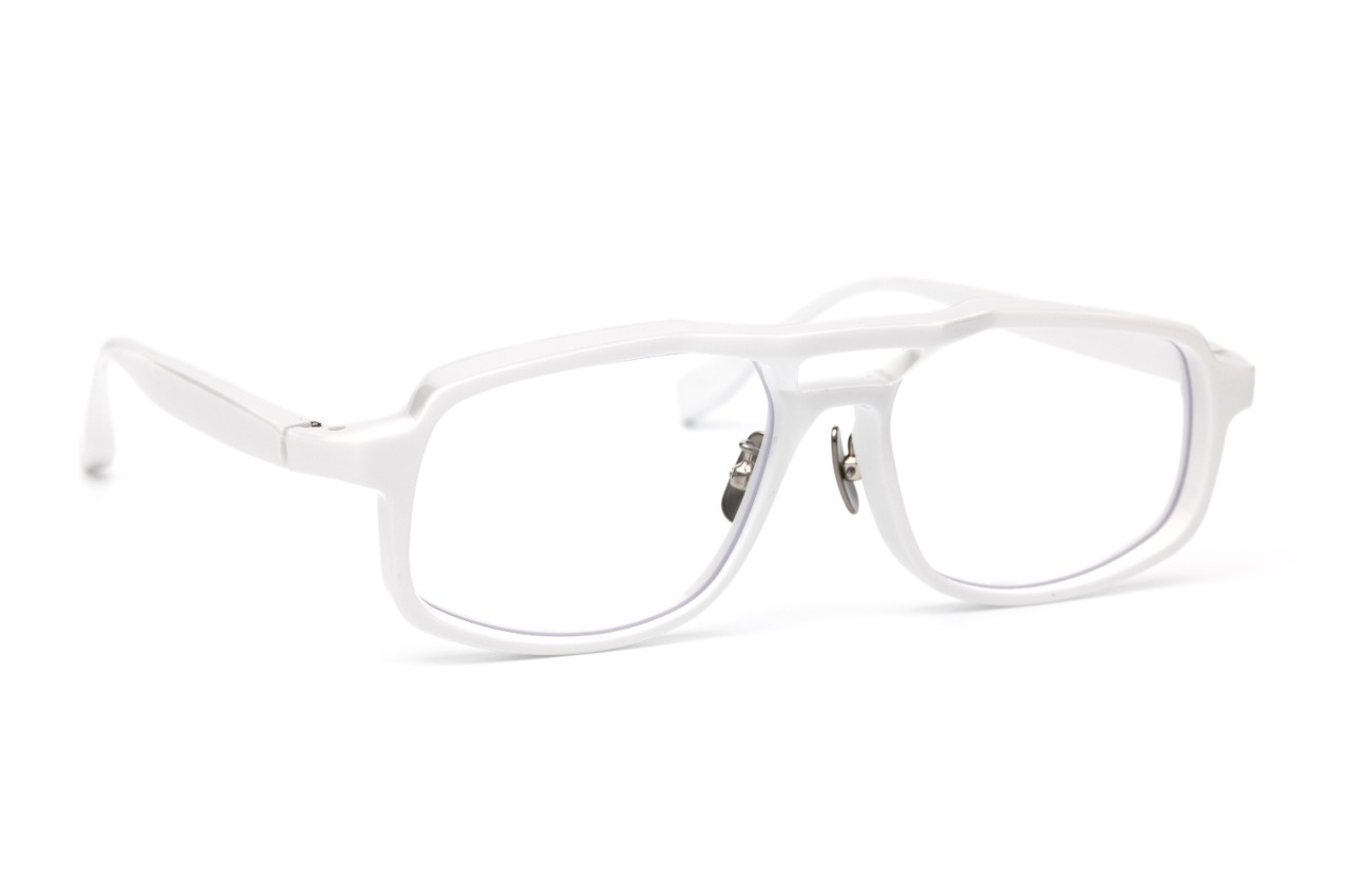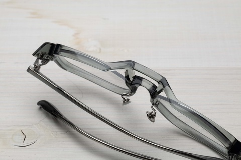 ご覧のように上面から見ると、ごくシンプルなツーブリッジデザインに見えますが、そのクラシカルなデザインを青山眼鏡独自の技術を活かした立体構造によって奥行きのあるフューチャリステックな仕上がりに。そう、昨日ご紹介した「RF-025」とはそのアプローチが全く異なることがお分かりいただけるかと思います。