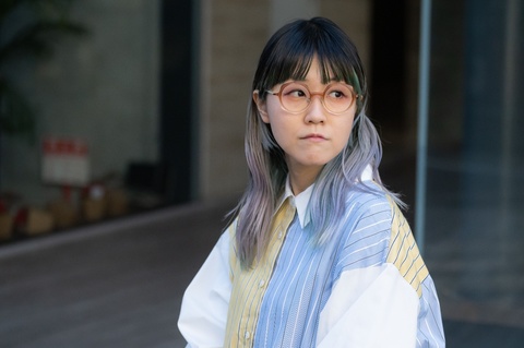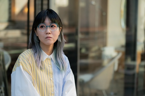 ハッキリとした色使いにより、丸メガネというよりはフロントの本来の多角型が見てとれカジュアルな印象に。シックで落ち着いた「col.039」とは対照的に、「col.315」はアクティブなイメージを作り出します。