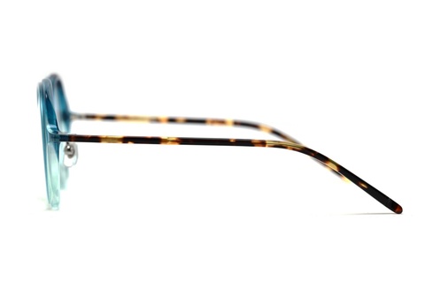 こちも「col.315」と同じくグラデーションカラー、テンプルは使い勝手も考慮しバイカラーのバラフを組みわせました。テンプルのカラーによって、メガネの印象は大きく変わります。掛けてしまうと髪の毛によって隠れ見えなくなってしまいがちなテンプルですが、フロントのカラーとの組み合わさは非常に重要です。