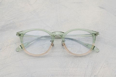 本来こちらの「col.711」には、可視光線透過率75%のブルー系のレンズを組み合わせてありますが、お客様いわく、入店した瞬間そのクリア系の色合いに一目惚れされたとのこと。サングラスにしてしまうと掛ける頻度も限られてしまうため、今回はメガネとしてご注文をいただきました。