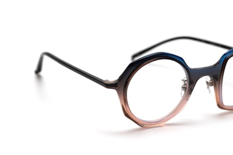 また、青山眼鏡独自の技術を用いカタチづくられたレンズシェイプを縁取るラインが、見る角度、光の当たり方によってうっすらと浮かび上がり、加えて細部に施された面カットにより、シンプルに見えるフロントに立体的を宿します。こういった細部への拘りが、一見ポップに見えるデザインのイメージを覆す顔馴染みの良さを生み出します。