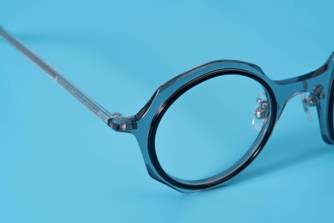 また、レンズシェイプをトレースする縁取りは確かに丸ですが、ベースとなるフロントは多角型、加えて側面には面カットを施し、顔馴染みの良さを後押ししています。