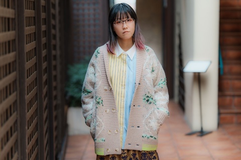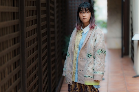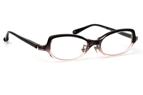 この数年、サイズ感は違えどラウンド型のメガネを掛けているスタッフ松本ですが、こうして天地幅の狭い「fa-2025」もホントに良く似合っています。カジュアルでカワイイ印象を与える丸メガネに対して、知的でどこか艶感のあるおしとやかな印象に。今から15年~20年前、カジュアルなレディースのメガネといえば、こういったデザインが主流でしたが、当時とは異なる点はその色使いです。