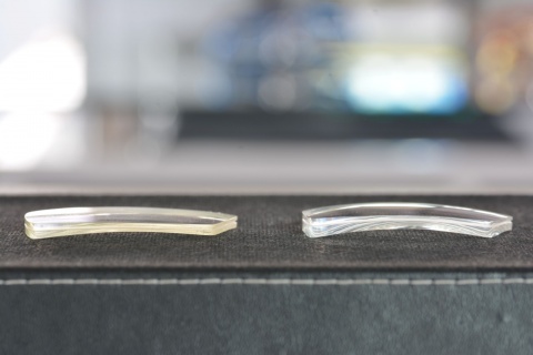 過去のブログでご紹介しましたが、左は一般的な外面非球面レンズ、右が直営店として推奨しているカーブ指定をした内面非球面と呼ばれるレンズになります。