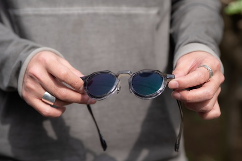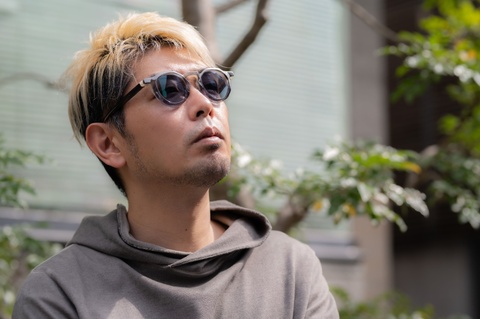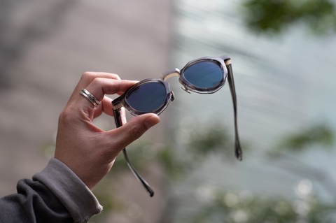 商品詳細でも触れた通り、「RF-038」はレンズの天地幅が広く、カラーレンズとの相性も良いことから、サングラスとしてご検討されている皆さんもいらっしゃるのではないでしょうか。しかし、調光レンズを組み合わせることで、屋内ではメガネ、屋外ではサングラスとしてオールマイティーにご使用いただけます。では、実際に屋外で発色の様子を見てみましょう。