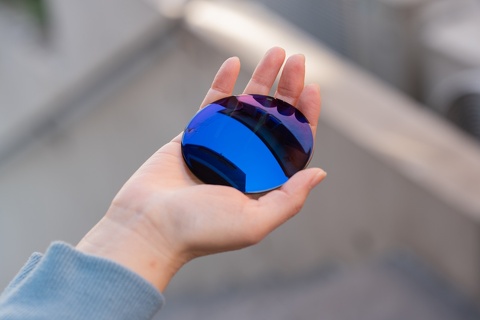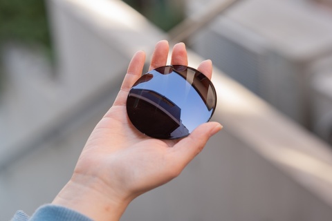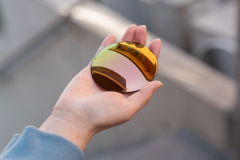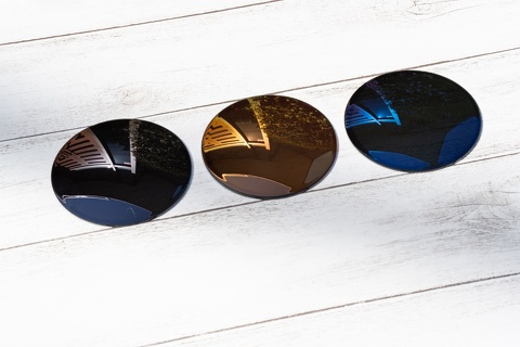 シルバー・オレンジ・ブルーのミラーコート、屋外にレンズを出した途端に発色がはじまり、可視光線調光 ”SENSITY DARK”と同様に発色までの時間は非常に早い印象です。ただし、ミラーレンズということで若干気になる点もございます。次回、実際にサンプルレンズをフレームに組み込んで改めてご紹介させていただきます。